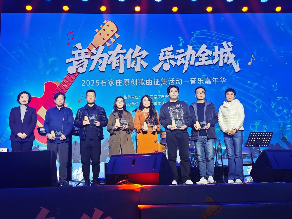 近日,由中共石家庄市委宣传部、石家庄市文化广电和旅游局联合主办的“2025石家庄原创歌曲征集活动”圆满落幕,评选结果正式揭晓。河北传媒学院音乐学院学生凭借扎实的专业功底与鲜明的创作特色脱颖而出,斩获佳绩。2022级艺术与科技专业学生秦嘉艺创作的歌曲《WALKING IN THE ROCK HOME TOWN》实力摘得“最佳歌曲奖”,2017届毕业生毛一鹏的《亲爱的你》、2024届毕业生韩昕初与蒲文宇联袂创作的《家》成功入围,并受邀在颁奖现场登台献唱原创作品,成为活动中一道亮眼的“河传风景”。