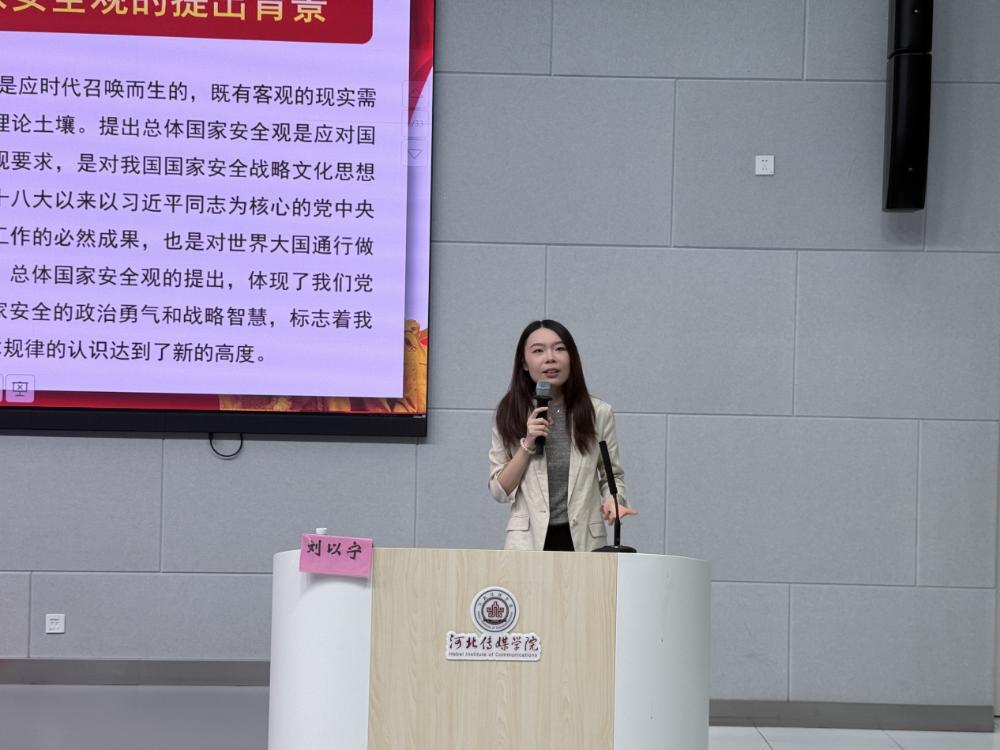 讲座中,刘以宁老师以历史与光影为切入点,围绕总体国家安全观核心要义,结合文化安全、意识形态安全与传媒专业实践,阐释国家安全的重要内涵,引导师生明确新时代青年维护国家文化安全的责任。