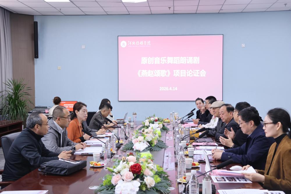 4月14日,河北传媒学院在新闻传播学院组织召开原创音乐舞蹈朗诵剧《燕赵颂歌》国家艺术基金项目专家论证会。河北省文化和旅游研究院艺术基金办公室主任王晓丹,河北省社科院哲学所所长、史学博士魏建震,中共河北省委党校报刊社原社长、文学博士孙英臣,河北广播电视台一级导演牛振乾等多位业界知名专家,河北传媒学院副校长王彰平、李建平以及相关职能部门、学院领导、项目核心成员参加了会议。会议核心任务是对原创音乐舞蹈朗诵剧《燕赵颂歌》项目的可行性、创新性及实施环节进行全面论证,听取专家意见,为国家艺术基金申报工作奠定坚实基础。
